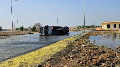 लालसोट डिप्टी एसपी दिलीप मीना ने बताया कि केमिकल से भरा एक टैंकर कोटा से सिकंरदाबाद जा रहा था, जो कि अमराबाद रेस्ट ऐरिया में पलट गया। टैंकर के मालिक के अनुसार इसमें 35 टन हाइड्रोक्लोरिक एसिड था, जो पूरा बह गया। दूसरी ओर जिला हॉस्पिटल में उपचार के लिए पहुंचे हैल्पर तरुण ने बताया कि रेस्ट एरिया की पार्किंग में गाड़ी खड़ी करने के दौरान टायर फटने के बाद टैंकर पलट गया।