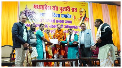 Bhopal News: श्यामला हिल्स हिंदी भवन में मंगलवार को संत पुजारी संघ का स्थापना दिवस संस्कार उत्सव के रूप में मनाया गया। यहां सनातन संस्कृति और 16 संस्कारों को अपनाने के साथ घर-घर पहुंचाने का संकल्प संत पुजारियों ने लिया। मठ मंदिरों से भू माफियाओं का दखल खत्म कर मंदिरों संरक्षण के नीति बनाने की मांग भी की गई। सम्मेलन का शुभारंभ स्वास्तिवाचन और शंखनांद के साथ किया गया। जिसमें सनातन संस्कृति और संस्कारों पर व्याख्यान हुआ। इस मौके पर संत एएस रामनाथन ने कहा कि वैदिक संस्कृति और पूर्वजों के जो संस्कार है, उन्हें आत्मसात करना हमारा कर्तव्य है। इसे अपनाए और दूसरों को भी प्रेरित करे।