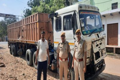 dholpur. मनियां थाना पुलिस ने कार्रवाई करते हुए अवैध चम्बल रेता बजरी का परिवहन करते हुए दो ट्रक (डम्फर/ट्रेलर) को पकड़ा है। साथ ही दोनों वाहनों के चालकों को गिरफ्तार किया है। जहां एक ट्रेलर के ऊपर गिट्टी एवं दूसरे ट्रेलर के ऊपर डस्ट डालकर प्रतिबंधित चम्बल रेता का परिवहन कर रहे थे।