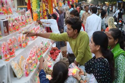 लक्ष्मी पूजन के समय शक्कर से बने खिलौने जिनमें ऊंट, हाथी घोड़ा आदि होते उनसे पूजन करने का विधान होता है। साथ ही पूजन में खील का भी काफी महत्व माना जाता है। जिस कारण शक्कर के खिलौनी 80 से 100 रुपए किलो और खील 100 से 150 रुपए किलो बिकी। जिसे लोगों ने खूब खरीदा।