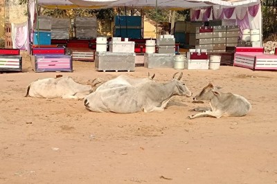 स्टेज के सामने गोवंश का अधिक जमावड़ा
