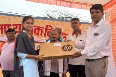 जिसे स्वतंत्रता दिवस समारोह में मंच पर सम्मानित किया गया। मंच पर सम्मान पाकर छात्रा के चेहरे पर मुस्कान आ गई। ग्राम पंचायत सरपंच प्रतिनिधि ने मंच पर छात्रा को लेपटॉप देकर सम्मानित किया गया। सरपंच प्रतिनिधि धर्मेन्द्र सिंह परमार ने बताया कि 26 जनवरी के समारोह में गांव के स्कूल में बच्चों का हौसला बढ़ाने के लिए बोर्ड परीक्षा में 95 प्रतिशत अंक हासिल करने पर लेपटॉप देने की घोषणा की गई थी।