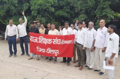 हाल ही में जर्जर विद्यालय भवनों के कारण हुई दर्दनाक घटनाओं के लिए निर्दोष शिक्षकों को प्रताड़ित करना घोर अन्यायपूर्ण है, जिसे बर्दाश्त नहीं किया जा सकता। इसलिए संगठन ने आन्दोलन के तृतीय चरण में आज मंगलवार को प्रदेश के मुख्य ब्लॉक शिक्षा अधिकारी कार्यालयों का घेराव कर विरोध प्रदर्शन किए हैं। तथा मुख्य ब्लॉक शिक्षा अधिकारियों के माध्यम से मुख्यमंत्रीए राजस्थान सरकार एवं शिक्षा सचिव को 12 सूत्रीय मांग पत्र दिया है।धौलपुर में संगठन के शिक्षकों ने मुख्य ब्लॉक शिक्षा अधिकारी कार्यालयों पर विरोध प्रदर्शन कर मुख्य ब्लॉक शिक्षा अधिकारी के माध्यम से मुख्यमंत्री एवं शिक्षा सचिव को ज्ञापन दिया है। जिलाध्यक्ष विशाल गिरी जिलामंत्री बृजमोहन शर्मा, संयोजक संघर्ष समिति अविनाश अग्रवाल ने सरकार को चेतावनी देते हुए कहा कि सरकार समय रहते शिक्षकों की वाजिब मांगों का शीघ्र समाधान करे अन्यथा आन्दोलन तेज किया जायेगा। विरोध प्रदर्शन में सभाध्यक्ष मुन्नालाल उपाध्याय, संयोजक संघर्ष समिति अविनाश अग्रवाल, संरक्षक रामगोविंद शर्मा, ओमप्रकाश गुर्जर, कुलदीप रावत, पंकज कुमार, शिक्षा कुमारी, गगन कुलश्रेष्ठ, सुमन देवी, कविता गिल, सुभाषचंद्र, फिरोज खान, सत्येंद्र वर्मा, संत कुमार, शिवम आदि मौजूद रहे।