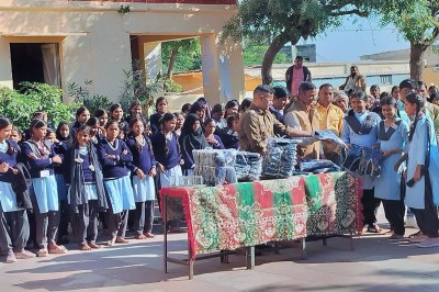 बालिका स्कूल में 550 छात्राओं को मिला गरम स्वेटर, बेटियों के खिले चेहरे
