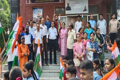 - हजारों बच्चों ने तिरंगा थाम दिया हर घर तिरंगा घर घर तिरंगा का संदेश