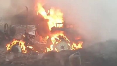 ट्रैक्टर और थ्रेसर मशीन भी पूरी तरह जलकर हो गए खाक