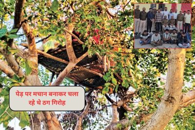 कुछ लोग आसपुर सोम कमला आम्बा बांध के पेटे के पास पिंडावल गांव में एक खेत में मचान बनाकर ऑनलाइन ठगी कर रहे हैं। टीम मौके पर पहुंची तो एक पेड़ पर ऊंचाई पर एक मचान बना हुआ था। यहां बैठे कुछ युवा मोबाइल पर चेटिंग कर रहे थे। पुलिस ने आरोपियों को चारों तरफ से घेरकर मचान से नीचे उतारा।