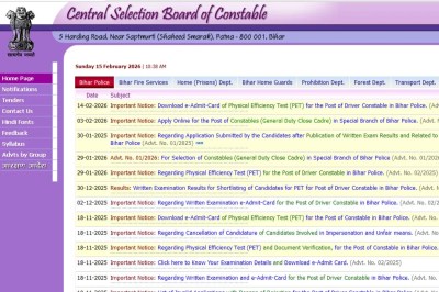 CSBC Bihar Police Constable PET Admit Card: बिहार पुलिस में भर्ती की तैयारी कर रहे अभ्यर्थियों के लिए अहम अपडेट सामने आया है। केंद्रीय चयन पर्षद (सिपाही भर्ती), बिहार (CSBC) ने कांस्टेबल ड्राइवर पद के लिए आयोजित होने वाली शारीरिक दक्षता परीक्षा (PET) के एडमिट कार्ड जारी कर दिए हैं। लिखित परीक्षा में सफल उम्मीदवार आधिकारिक वेबसाइट csbc.bihar.gov.in पर जाकर अपना एडमिट कार्ड डाउनलोड कर सकते हैं। बोर्ड ने PET एडमिट कार्ड डाउनलोड करने के लिए सीधा लिंक भी जारी कर दिया है। अभ्यर्थियों को सलाह दी जाती है कि अंतिम समय की भीड़ या टेक्निकल दिक्कत से बचने के लिए जल्द से जल्द अपना एडमिट कार्ड डाउनलोड कर लें।