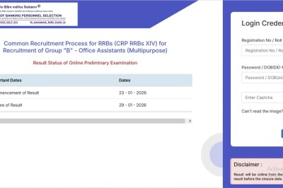 IBPS RRB Clerk Result: बैंकिंग कार्मिक चयन संस्थान (IBPS) ने क्षेत्रीय ग्रामीण बैंकों (RRB) में ऑफिस असिस्टेंट (क्लर्क) पद के लिए हुई प्रारंभिक परीक्षा का परिणाम घोषित कर दिया है। जो उम्मीदवार इस भर्ती परीक्षा में शामिल हुए थे, वे ibps.in वेबसाइट पर जाकर अपना परिणाम चेक कर सकते हैं। रिजल्ट देखने के लिए रजिस्ट्रेशन नंबर और पासवर्ड या जन्मतिथि दर्ज करनी होगी। यह रिजल्ट 29 जनवरी 2026 तक वेबसाइट पर उपलब्ध रहेगा। ऑफिस असिस्टेंट की प्रीलिम्स परीक्षा 6, 7, 13 और 14 दिसंबर 2025 को आयोजित की गई थी।
