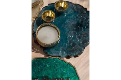 Resin art has also made its mark in puja materials for Diwali. Puja thalis decorated with real flowers are highly appreciated by devotees. These thalis also feature pictures of Lord Ganesha and Lakshmi, making the puja even more special.