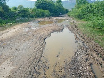 The road construction work from Gendoli to Kapren has been pending for three years, causing great inconvenience to people traveling on this route.