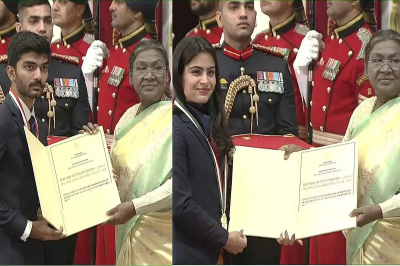 Besides Gukesh, two-time Olympic medallist shooter Manu Bhaker, men's hockey team captain Harmanpreet Singh, and Paralympic gold medal-winning high jumper Praveen Kumar were also conferred with the country's highest sporting honour.