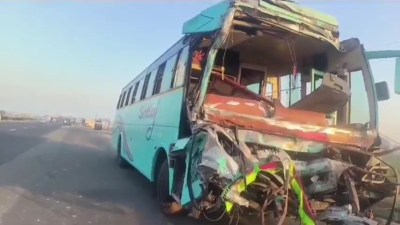 Bus going to Maha Kumbh collided with truck इटावा में कुंभ जा रही बस और ट्रक में जोरदार टक्कर हो गई। टक्कर इतनी जबरदस्त थी कि बस के परखच्चे उड़ गए। मौके पर कोहराम मच गया। सूचना पाकर मौके पर पहुंची स्थानीय थाना पुलिस ने राहत और बचाव कार्य चलाया। घायलों को स्थानीय जिला अस्पताल में भर्ती कराया गया। जहां से गंभीर रूप से घायल यात्रियों को पीजीआई सैफई में भर्ती कराया गया। घटना बकेवर थाना क्षेत्र हाईवे की है।