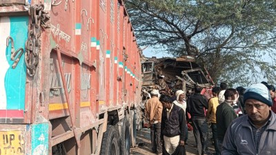 Collision between cylinders truck and dumper फर्रुखाबाद में हुए भीषण सड़क हादसे में दो चालक सहित तीन लोगों की मौत हो गई। टक्कर इतनी जबरदस्त थी कि ट्रक के परखच्चे उड़ गए। मौके पर पहुंची स्थानीय थाना पुलिस ने राहत और बचाव कार्य चलाया। घायलों को स्थानीय स्वास्थ्य केंद्र में भर्ती कराया गया है। कड़ी मशक्कत के बाद दोनों ट्रकों में फंसे चालकों को बाहर निकाला गया। लेकिन तब तक दोनों की मौत हो चुकी थी। पुलिस में शव को कब्जे में लेकर पोस्टमार्टम के लिए भेज दिया है। घटना मोहम्मदाबाद कोतवाली क्षेत्र की है।