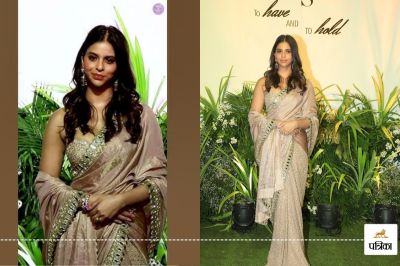ग्लैमर की खास शाम को और खास बनाने के लिए हसीना ने बेहद एलिगेंट साड़ी लुक को चुना, जिसमें सुहाना किसी राजकुमारी से कम नहीं लग रही हैं। सुहाना ने खास रात के रिसेप्शन फंक्शन के लिए डिज़ाइनर अर्पिता मेहता के बेस्ट कलेक्शन से गुलाबी टिशू हैंड-एंब्रॉयडर्ड हाफ एंड हाफ साड़ी को चुना, जिसमें किंग खान की लाडली बेहद खूबसूरत लग रही हैं, जैसा कि आप तस्वीर में देख सकते हैं। सुहाना खान (Suhana Khan)ने कैसे साड़ी के लुक को बेहतर तरीके से संभालते हुए पोज़ दिए, यह सच में एक अद्भुत नज़ारा था। उनके स्लीवलेस प्लंजिंग ब्लाउज ने उनके साड़ी लुक में चार चांद लगा दिए। उनकी यही बेमिसाल खूबसूरती और स्टाइलिश अंदाज ने फैंस को दीवाना बना दिया है।