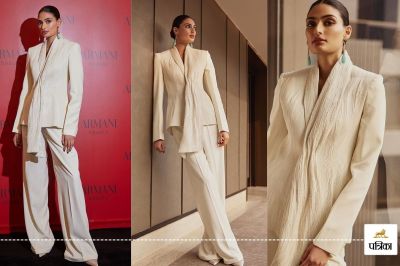 इस लुक की खासियत है, क्लासी व्हाइट हाई राइज कमर, फ्लेयर्ड सिल्हूट, फ्लोर-ग्रेजिग लेंथ और फोल्डेड हेम वाली मैचिंग आइवरी पैंट को ब्लेजर के साथ पहना है, जो अथिया को एक क्लासी, बोल्ड बॉस लुक दे रहा है। उनका यह लुक न केवल उनकी पर्सनैलिटी को दर्शा रहा है, बल्कि यह भी दिखा रहा है कि कैसे एक महिला अपने आत्मविश्वास के साथ अपने स्टाइल को फ्लॉन्ट कर रही है। इस लुक के साथ अथिया ने एक नया ट्रेंड सेट किया है, जो हर फैशन मोटिवेटर को फैशन का एक नया प्रेरणा दे रहा है।