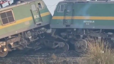 Two goods trains collide, Kanpur Fatehpur Dedicated Freight Corridor track कानपुर फतेहपुर डेडीकेटेड फ्रेट कॉरिडोर पर दो मालगाड़ियां एक ही पटरी पर आ गई। जिसमें जोरदार टक्कर हो गई। दोनों मालगाड़ियों के चालक गंभीर रूप से घायल हो गए। मालगाड़ी के डिब्बे भी पटरी से उतर गए। मौके पर पहुंची राहत और बचाव टीम ने घायलों को अस्पताल में भर्ती कराया। रेलवे के उच्चाधिकारी भी मौके पर पहुंच गए। घटना के बाद कानपुर फतेहपुर डेडीकेटेड फ्रेट कॉरिडोर ट्रैक पर यातायात पूरी तरह बाधित हो गया। रेल यातायात बहाल करने का प्रयास किया जा रहा है। घटना कानपुर फतेहपुर के बीच खागा पांभीपुर के पास की है।