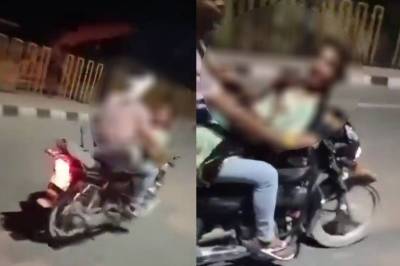 यूपी के फिरोजाबाद में चलती बाइक पर कपल के रोमांस करने का वीडियो सामने आया है। राहगीरों ने जब उन्हें ऐसा करने से मना किया तो उन्होंने उनकी बात न मानी और अपना कार्यक्रम जारी रखा।