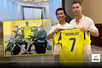 Cristiano Ronaldo Chinese fan: अपने हीरो से मिलने के लिए फैन्स क्या कुछ नहीं करते। चीन के अन्हुई प्रांत के 24 वर्षीय गोंग तो पुर्तगाली फुटबॉल खिलाड़ी क्रिस्टियानो रोनाल्डो से मिलने साइकिल से निकल पड़े और सात माह में करीब 13 हजार किलोमीटर की यात्रा कर सऊदी अरब की राजधानी रियाद पहुंचे, जहां रोनाल्डो रहते हैं। 20 अक्टूबर को एक मिनट की मुलाकात के दौरान रोनाल्डो ने गोंग को गले लगाया और हस्ताक्षर कर अपनी 7 नंबर जर्सी दी। 39 वर्षीय रोनाल्डो 900 गोल के साथ सबसे ज्यादा गोल दागने वाले दुनिया के एकमात्र फुटबॉलर हैं। इंस्टाग्राफ पर उनके सबसे ज्यादा 64 करोड़ फॉलोअर्स हैं।