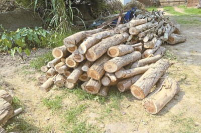 कटाई सूखे पेड़ों की ही हुई है। सारी लकड़ी गोशाला में रखी गई है। मजदूरों को तात्कालिक भुगतान के लिए एक ट्रैक्टर लकड़ी गलती से बेच दी।
