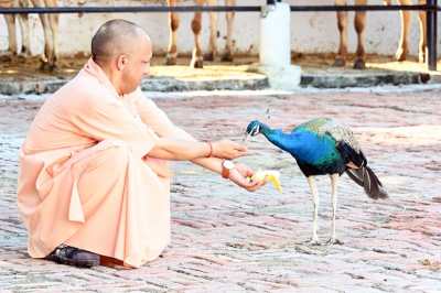 मुख्यमंत्री योगी आदित्यनाथ के प्रवास का आज दूसरा दिन है, रविवार प्रातः उन्होंने गुरु गोरखनाथ की पूजा की। अपने गुरु ब्रह्मलीन महंत अवैद्यनाथ की समाधि स्थल पर जाकर उनका आशीर्वाद लिये उसके बाद परिसर में ही भ्रमण किए। गोशाला के पास टहल रहे मोरों को योगी ने अपने पास बुलाया, वहीं बैठकर केला खिलाने लगे। यहां से योगी गोरखनाथ मंदिर की गोशाला में गए। योगी को देखते ही गाय और बछड़े उनके पास आ गए। योगी ने उन्हें गुड़ और चना खिलाया।