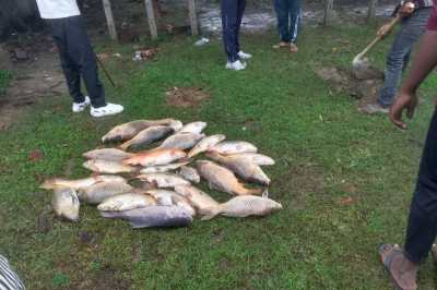 गोरखपुर के तिवारीपुर थानाक्षेत्र स्थित प्रसिद्ध सूर्यकुण्ड पोखरे के पास उस समय हड़कंप मच गया जब पोखरे में तड़पती, खून की उल्टियां करती मछलियां मर रही थीं। यह देख जिम्मेदार लोगों ने नगर निगम को तत्काल सूचना दी जिसके बाद पहुंची निगम की टीम ने रेस्क्यू शुरू किया। बता दें कि सूर्यकुण्ड पोखरे में दीपोत्सव के बाद तालाब में गंदगी बढ़ गई है। कुछ लोग पूजा सामग्री को तालाब में डालते दिखे, जबकि वहां पहले से ही कूड़ेदान की सुविधा रखी गई थी। इन दीपकों के तेल की वजह से पोखरे की सतह पर तेल की एक परत बन गई। इससे पानी में घुली ऑक्सीजन की मात्रा कम हो गई और मछलियां सांस लेने के लिए परेशान होने लगीं।