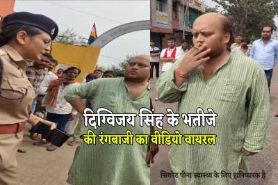 Digvijay Singh Nephew Video Viral: दिग्विजय सिंह के भतीजे और पूर्व कांग्रेस विधायक लक्ष्मण सिंह के बेटे आदित्य सिंह का एक वीडियो सोशल मीडिया पर तेजी से वायरल हो रहा है। वायरल वीडियो में आदित्य सिंह बीच रोड पर सिगरेट के कश लगाते हुए लेडी पुलिस ऑफिसर से बहसबाजी करते हुए नजर आ रहे हैं। वीडियो में आदित्य सिंह की रंगबाजी साफ दिख रही है। वीडियो वायरल होने के बाद अब पुलिस ने आदित्य सिंह के खिलाफ मामला दर्ज किया है। तो चलिए बताते हैं आपको पूरा मामला..।