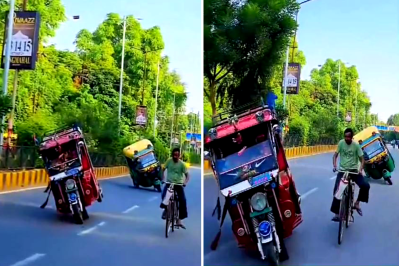 फिलहाल, वीडिय सोशल मीडिया पर तेजी से वायरल होने लगा है। सामने आए वीडियो में साफ तौर देखा जा सकता है कि मस्ती में चूर ई-रिक्शा और ऑटो चालक और अन्य रिक्शा चालक सड़क पर दो पहियों पर अपने अपने वाह दौड़ा रहे हैं। दोनों ऑटो के बीच एक व्यक्ति साइकिल से जाता हुआ भी नजर आया। जो अपने आसपास दो पहियों पर इन गाड़ियों को चलता देख कुछ सेकंड के लिए तो हड़बड़ा ही गया। गनीमत रही कि इस दौरान उसने अपना नियंत्रण नहीं खोया, वरना वो हादसे का शिकार हो सकता था।