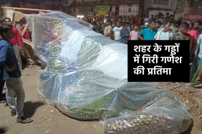 Ganesha idol fell: ग्वालियर शहर की गड्ढेदार और जर्जर सडक़े एक बार फिर से विघ्नहर्ता पर भारी पड़ी हैं। खल्लासीपुरा में विराजित करने के लिए ले जा रही गणेश प्रतिमा विराजित होने से पूर्व ही बीच रास्ते में धड़ाम हो गई।