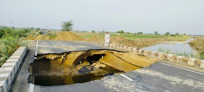 बताया जा रहा है कि दोनों साइडो में लगे बंधे खोलने से पुल निर्माण के दौरान डाली गई बालू रेत में कटाव लग गया। करीब सात मीटर चौड़ाई में बनी सडक़ पर 7-8 फीट गहरा गड्ढा 25-30 फीट लम्बाई तक हो गया है। पुल टूटने से वाहनों का आवागमन पूरी तरह से बंद हो गया है।
