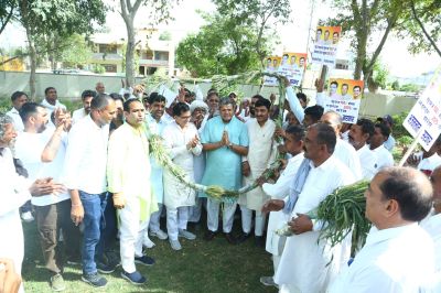 हनुमानगढ़. राज्य सरकार द्वारा गेहूं पर 150 रुपए प्रति क्विंटल बोनस देने और समर्थन मूल्य को बढ़ाकर 2575 रुपए करने के निर्णय पर किसानों ने हर्ष व्यक्त किया। यहां पहुंचने पर प्रभारी मंत्री एवं खाद्य एवं आपूर्ति मंत्री सुमित गोदारा का किसानों ने सर्किट हाउस में अलग अंदाज में स्वागत किया।