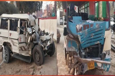 प्राथमिक जानकारी: बोलेरो अनियंत्रित होकर बस से टकराई।