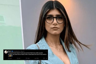 31 साल की मिया खलीफाने सोशल मीडिया पर धमाका किया है। उन्होंने एक लेटेस्ट ट्वीट किया है जिसे अब तक 4.5 लाख से भी ज्यादा लोगों ने लाइक किया है। उन्होंने गवर्नमेंट का जिक्र करते हुए फैंस के नाम एक मैसेज लिखा है। उन्होंने लिखा, "सरकार नहीं चाहती कि आपको पता चले कि यदि आप जल्दी उठते हैं, तो बाकी दुनिया के जागने से पहले आपके पास बिस्तर पर फिल्म देखने का समय होगा।" उनका ये ट्वीट काफी फैंस को अजीब लग रहा है और कई इस ट्वीट पर अपनी राय दे रहे हैं।आखिर मिया सरकार को कहना क्या चाहती हैं ये किसी को समझ नहीं आ रहा है।