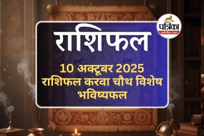 Aaj Ka Rashifal, 10 October 2025 : 10 अक्टूबर 2025 शुक्रवार का दिन है, जब सुहागिनों का पावन पर्व करवा चौथ मनाया जाएगा। कार्तिक मास के कृष्ण पक्ष की चतुर्थी तिथि पर ग्रह-नक्षत्रों का विशेष संयोग बन रहा है। आज मेष और तुला राशि वालों के लिए भूमि-भवन से जुड़े बड़े आर्थिक लाभ के योग बन रहे हैं। वृषभ को जीवनसाथी का सहयोग मिलेगा, जबकि कर्क की कार्यस्थल पर प्रतिष्ठा बढ़ेगी और नए संपर्क लाभ देंगे। पंडित मुकेश भारद्वाज से अपनी राशि का भविष्यफल जानें: प्यार, करियर, स्वास्थ्य, शुभ रंग और अंक।