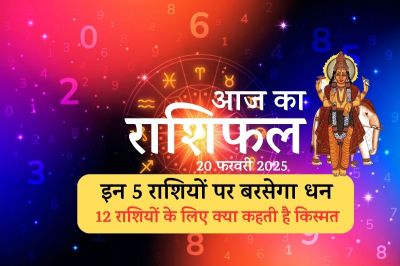 Aaj Ka Rashifal 20 February : आज के राशिफल में मेष, वृषभ, कर्क, सिंह, धनु और मीन राशि पर देवगुरु बृहस्पति का आशीर्वाद बना हुआ है। धन-लाभ और नौकरी, व्यापार में उन्नति के योग बन रहे हैं। पं. चंदन श्याम नारायण व्यास से जानिए आज का दिन कैसा रहेगा। जानिए अपना दैनिक राशिफल और समझदारी से निर्णय लें।