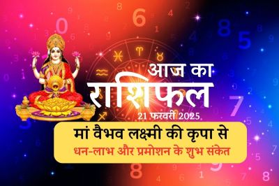 Aaj Ka Rashifal 21 February 2025 : मां वैभव लक्ष्मी की कृपा से शुक्रवार का दिन मेष, मिथुन, कर्क, कन्या, कुम्भ राशि वालों के लिए बेहद विशेष होने वाला है । धन-लाभ नौकरी में प्रमोशन मिलने के योग बन रहे है। धनु के लिए आर्थिक स्थिति ठीक नहीं है। सिंह वाले क्रोध, उत्तेजना पर नियंत्रण रखें। तुला राशि के लोग स्वास्थ्य की ओर ध्यान दें । आज के राशिफल में पं. चंदन श्याम नारायण व्यास से जानिए सभी राशियों का सटीक भविष्यफल।