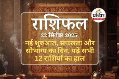 Aaj Ka Rashifal 22 September 2025 : 22 सितंबर 2025 शारदीय नवरात्रि का पहला दिन मां दुर्गा के प्रथम स्वरूप मां शैलपुत्री की पूजा की जाती है। मां शैलपुत्री को सौभाग्य की देवी माना जाता है। वैदिक ज्योतिष के अनुसार आज मेष राशि के लोग पारिवारिक आयोजनों में व्यस्त रहेंगे, वृषभ को व्यवसाय में प्रगति मिलेगी। मिथुन राजनीति और रिश्तों में संतुलन साधेंगे। कर्क को नेतृत्व और स्वास्थ्य लाभ होगा, सिंह को मित्र सहयोग मिलेगा। कन्या का खर्च बढ़ेगा पर स्थिति सुधरेगी। तुला को नए व्यवसाय और संपत्ति लाभ होंगे। वृश्चिक जीवनशैली में बदलाव से प्रसन्न रहेंगे। धनु नए कार्य आरंभ कर सकते हैं, मकर को रुका धन मिलेगा। कुंभ को मान-सम्मान व नौकरी का अवसर मिलेगा। मीन जातक सकारात्मक सोच से आगे बढ़ेंगे। आइए जानते हैं पं. चंदन श्यामनारायण व्यास से आपकी राशि के लिए क्या खास है।