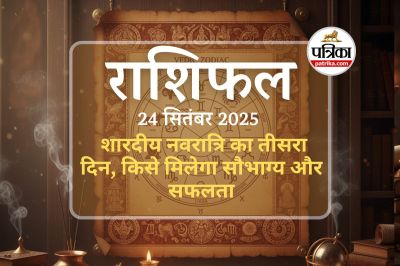 आज का राशिफल 24 सितंबर 2025: शारदीय नवरात्रि का तीसरा दिन मां चंद्रघंटा और गणेश जी की कृपा से कई राशियों के लिए शुभ है। जानें पं. चंदन श्यामनारायण व्यास से मेष से मीन तक का दैनिक राशिफल, धन लाभ, पदोन्नति और सौभाग्य की भविष्यवाणी।