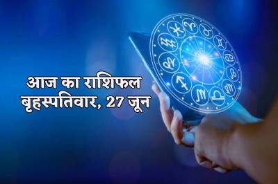 Aaj Ka Rashifal 27 June 2024: आज का पंचांग के अनुसार बृहस्पतिवार आषाढ़ कृष्ण षष्ठी है। 27 जून 2024 दैनिक राशिफल का संकेत है कि गुरुवार को मिथुन, कर्क समेत 8 राशि के लोगों को धन लाभ होगा। पं चंदन श्याम नारायण व्यास से आज का राशिफल में बाकी लोग भी जाने अपना भविष्य (Daily Horoscope Thursday)