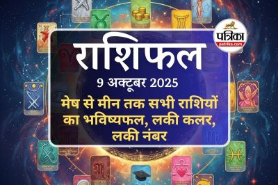 Aaj ka Rashifal 9 अक्टूबर 2025, Horoscope Today : आज 9 अक्टूबर 2025 का राशिफल संकेत दे रहा है कि यह दिन करियर, धन और रिश्तों के मोर्चे पर कई राशियों के लिए महत्त्वपूर्ण बदलाव और अवसर लेकर आएगा। वृषभ और मीन राशि के जातकों के लिए अप्रत्याशित धन लाभ और विवाह के अच्छे प्रस्ताव मिलने की संभावना है। कर्क और धनु राशि वालों को भाग्य का समर्थन मिलेगा, जिससे उनके कार्यों के परिणाम पक्ष में होंगे और कार्यस्थल पर सम्मान बढ़ेगा। वृश्चिक राशि के लिए यह दिन प्रतियोगी परीक्षाओं में सफलता और चुनौतियों पर विजय पाने का है। मेष और तुला राशि वालों को क्रमशः स्वास्थ्य के प्रति सचेत रहने और सरकारी कार्यों में लापरवाही से बचने की सलाह दी जाती है, जबकि सिंह राशि के जातकों को नए मित्रों पर आर्थिक भरोसा करने से पहले सतर्क रहना होगा। कन्या और मकर राशि के जातक अपनी उद्यमशीलता और मार्केटिंग कौशल से लाभान्वित होंगे। मिथुन और कुंभ राशि के लोग जहां भावनात्मक संबंधों में निकटता और कला/संगीत के क्षेत्र में प्रतिष्ठा हासिल कर सकते हैं, वहीं उन्हें रिश्तों में धैर्य और प्रयत्न बनाए रखने की आवश्यकता है। पंडित मुकेश भारद्वाज से जानिए मेष से मीन का राशिफल।