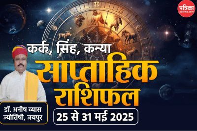 Saptahik Rashifal 25 to 31 may 2025: इस साल शनि जयंती 26 मई 2025 को है, उससे पहले 25 मई से नए सप्ताह की शुरुआत हो रही है। ये 7 दिन कर्क राशि वालों के लिए बेहद सौभाग्यशाली हैं। इस हफ्ते कई खुशखबरी मिल सकती है। साप्ताहिक राशिफल कर्क से कन्या में ज्योतिषी डॉ. अनीष व्यास से जानें अपना भविष्य (Kark weekly horoscope)