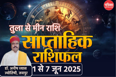 weekly horoscope: जून के पहले सप्ताह में तुला, धनु, मकर और कुंभ राशि के लोगों के सितारे बुलंद रहेंगे। 7 जून तक इन राशि के लोगों को तकदीर का साथ मिलेगा। साप्ताहिक राशिफल तुला से मीन 1 से 7 जून 2025 में जयपुर के ज्योतिषी डॉ. अनीष व्यास से जानें अपनी किस्मत का हाल (Saptahik Rashifal)