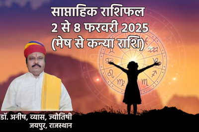 Sapatahik Rashifal: डॉ. अनीष व्यास के अनुसार 2 से 8 फरवरी का सप्ताह 3 राशि के लोगों के लिए सौभाग्य ला रहा है। इन लोगों की किस्मत कहां नफा नुकसान का संकेत दे रही है, गुरु ग्रह की चाल में बदलाव क्या असर डालने वाला है। सभी सवाल का जवाब जानने के लिए पढ़ें साप्ताहिक भविष्यवाणी मेष से कन्या ( Weekly Horoscope Prediction)