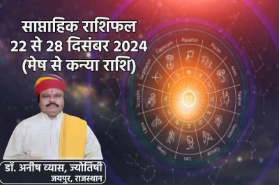 Weekly Horoscope 22 To 28 December 2024 : दिसंबर 2024 के आखिरी सप्ताह में आपका करियर, आर्थिक, पारिवारिक और सामाजिक जीवन कैसा रहेगा, इसकी चिंता मन में हैं तो जयपुर के मशहूर ज्योतिषी डॉ. अनीष व्यास से साप्ताहिक राशिफल मेष से कन्या में जानिए अपने हर सवाल का जवाब। पढ़ें साप्ताहिक भविष्यवाणी 22 से 28 दिसंबर 2024 (saptahik rashifal)