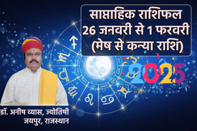साप्ताहिक राशिफल 26 जनवरी से 1 फरवरी (Weekly Horoscope 26 January To 1 February 2025): नया सप्ताह आपके लिए कैसा रहेगा, करियर और आमदनी की स्थिति कैसी रहेगी, ऐसे सवाल मन में हैं तो साप्ताहिक राशिफल मेष से कन्या 26 जनवरी से 1 फरवरी 2025 (Saptahik Rashifal 26 January To 1 February 2025) में जयपुर के ज्योतिषी डॉ. अनीष व्यास से जानिए।