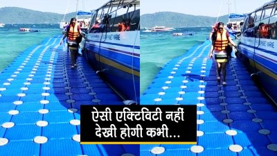 नई दिल्ली: जहाज पर हुई इस गजब की एक्टिविटी का वीडियो काफी देखा जा रहा है। वीडियो में देखा जा सकता है कि लोग उछलते पट्टों पर चल रहे हैं। वहीं एक महिला डर-डर के चल रही है। ये वीडियो लोगों को खूब पसंद आ रहा है। टिकटॉक पर इस वीडियो को लोग काफी देख भी रहे हैं।