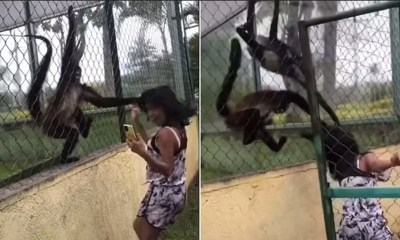 सोशल मीडिया पर एक वीडियो शेयर किया गया है। यह वीडियो मैक्सिको का है और इसमें एक पिंजरे में एक बंदर है जिसे लोग बाहर से देख रहे हैं। पिंजरे में जो बंदर है, वो स्पाइडर मंकी है। बंदर शांति से पिंजरे से लटका हुआ है, पर तभी एक लड़की आकर उसे चिढ़ाने लगती है।