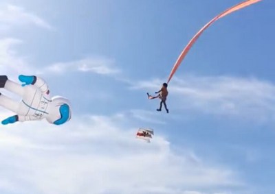 सोशल मीडिया पर एक वीडियो फिर से शेयर किया गया है। हालांकि यह वीडियो 4 साल पुराना है। यह वीडियो ताइवान का है और इसमें एक मैदान में कई लोग इकट्ठे हैं और पतंग उड़ा रहे हैं। इससे लगता है कि यह किसी पतंग फेस्टिवल का नज़ारा है। तभी वीडियो में 4 लोग कपड़े से बनी एक बड़ी पतंग को उड़ाने की तैयारी कर रहे हैं। पतंग को देखकर पता चल रहा है कि हवा तेज़ चल रही है। चारों लोग जैसे ही पतंग को छोड़ते हैं वो हवा में उड़ जाती है। पर तभी अचानक से सभी हैरान हो जाते हैं क्योंकि उस पतंग में फंसकर एक 3 साल की बच्ची भी हवा में उड़ जाती है।