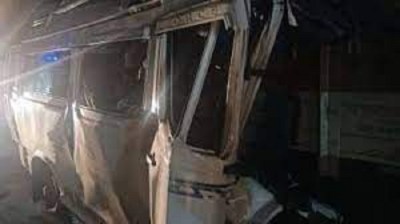 कर्नाटक के हावेरी जिले में शुक्रवार अल सुबह पुणे-बेंगलूरु राष्ट्रीय राजमार्ग पर एक मिनी बस ने खड़े ट्रक को पीछे से टक्कर मार दी, जिसमें दो बच्चों समेत 13 लोगों की मौत हो गई। दुर्घटना शुक्र्रवार सुबह करीब 4 बजे हावेरी जिले के ब्याडगी तहसील में गुंडेनहल्ली क्रास के पास हुई। पुलिस ने बताया कि मृतक शिवमोग्गा जिले के भद्रावती तहसील के एम्मीहट्टी गांव के थे। वे बेलगावी जिले में मंदिरों के दर्शन करके लौट रहे थे। टक्कर इतनी जोरदार थी कि मिनी बस का आगे का हिस्सा पूरी तरह से चकनाचूर हो गया। टक्कर के कारण शव मिनी बस के क्षतिग्रस्त हिस्सों में फंस गए। दमकल विभाग एवं पुलिस कर्मियों को शवों को निकालने में काफी मशक्कत करनी पड़ी। दुर्घटना में गंभीर रूप से घायल हुए चार लोगों को अस्पताल में भर्ती कराया गया है।