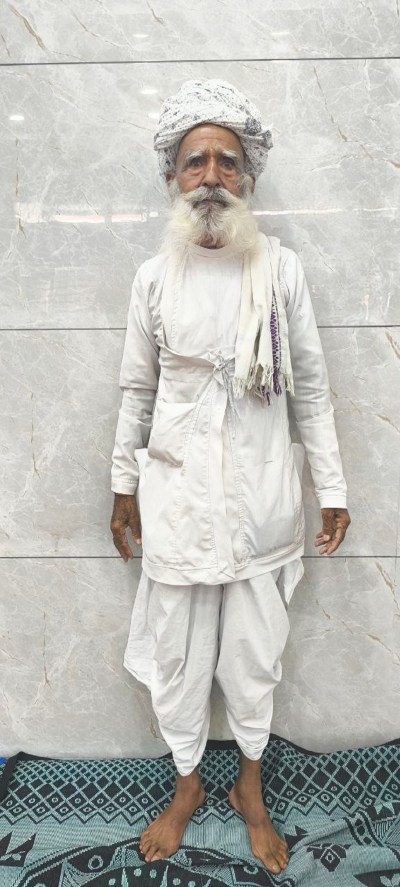 86 वर्ष के नारायण देवासी, जो आज भी निभा रहे हैं अपनी परंपराएं, सिर पर पगड़ी, गले में अंगोछा और जीवन में अनुशासन